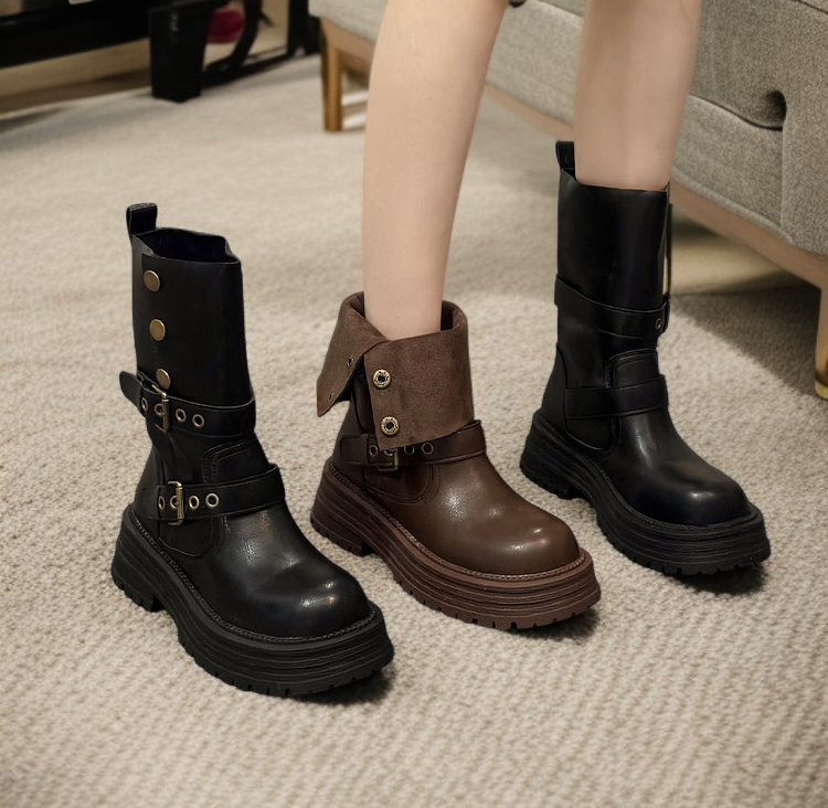2025年春秋新作レトロ厚底ブーツ商品写真