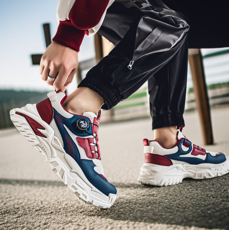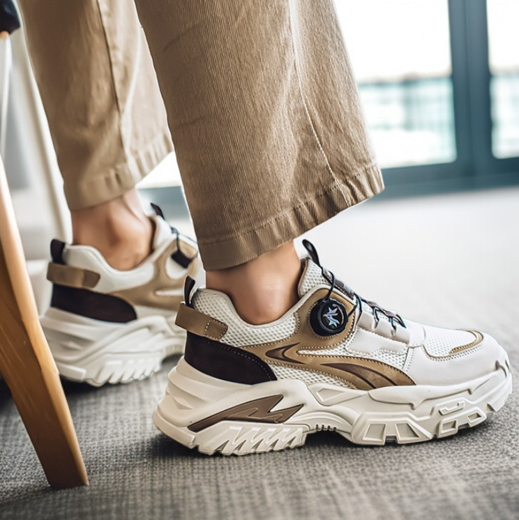 ファッションシューズ 2025年秋新作 ニッチ 学生 レジャー スポーツ ランニングシューズ 厚底 回転ボタン 旅行 お父さん シューズ